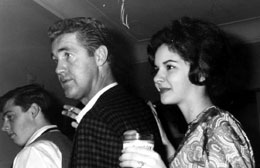 Monitor host Jim Lowe, surrounded at a party